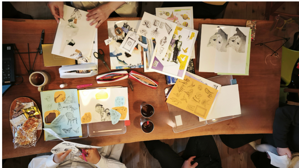人やペットの写真とスケッチをアナログで切り貼り。思い出を『アートインテリア』として作りかえる体験ワークショップ。